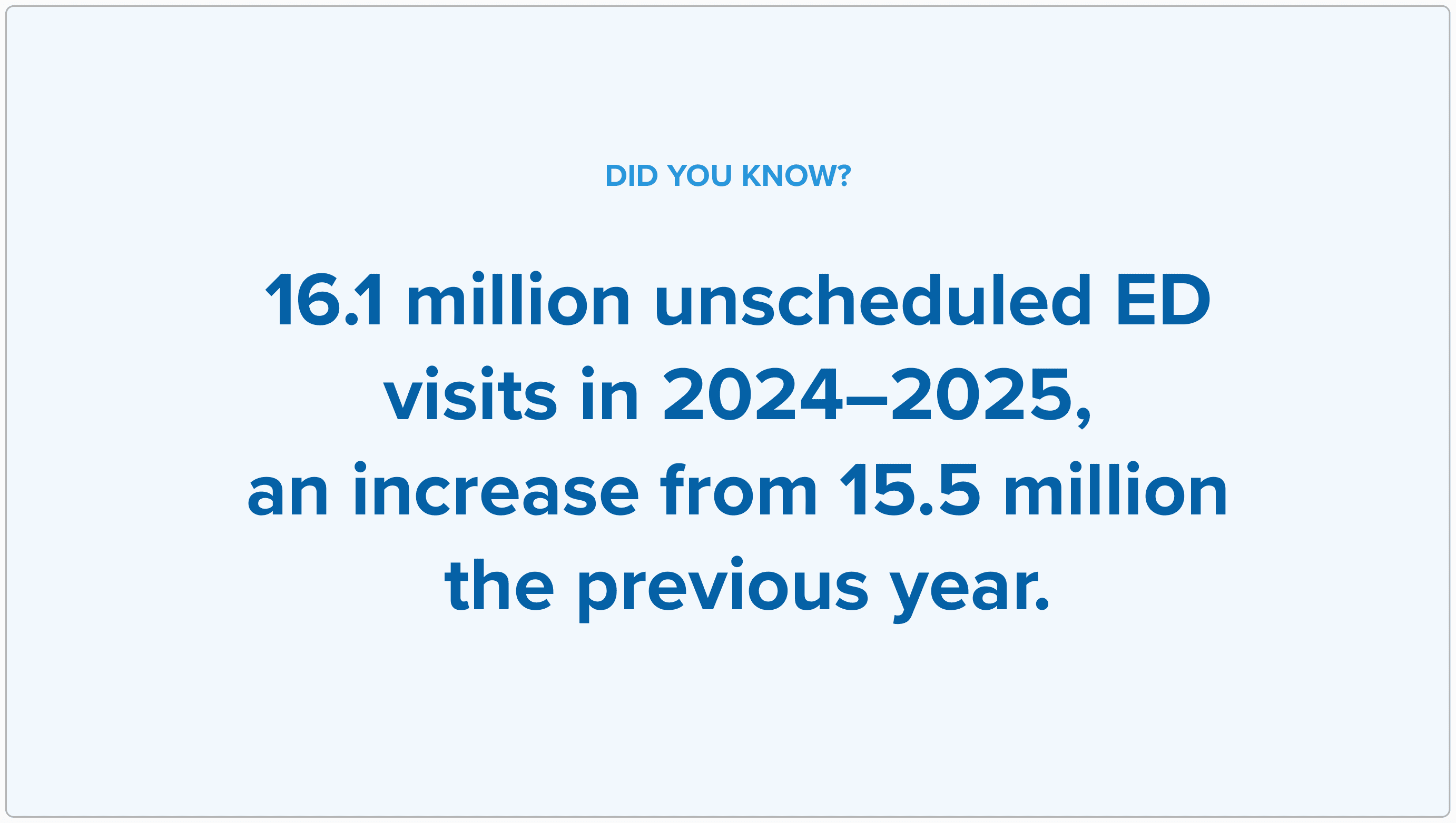 16.1 million unscheduled Emergency Department visits in 2024 - 2025, an increase from 15.5 million the year before.